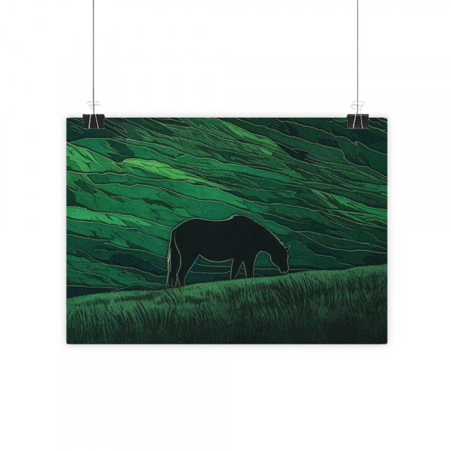 Abstract Horse Gloss Horizontal Poster – Sunset Art Print – Illustration Wall Poster