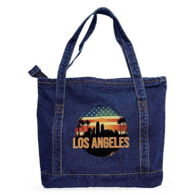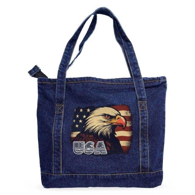 American Print Denim Tote Bag is made of high-quality denim fabric, which is soft, comfortable, and very trendy. It has a perfect size to easily keep your everyday essentials such as phone, wallet, umbrella, laptops, etc.