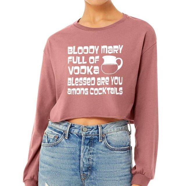 Bloody Mary Full Of Vodka Cropped Long Sleeve T-Shirt – Funny Women Stuff – Party Clothing