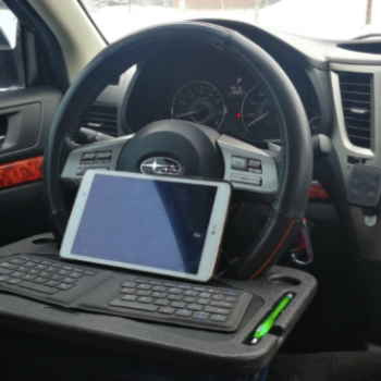 I am a manager that finds himself in the field quite a bit. I ordered this on a whim, and have since ordered a few for fellow managers, as gifts. The desk has fit almost every vehicle I have tried it in, and is just the right size for an iPad Pro in a Belkin Keyboard case. I have managed a laptop a few times as well. Oh, and you can eat lunch off of it as well, if you'd like. Just remove before driving. You have been warned.