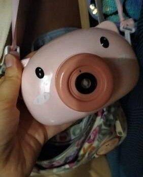 Bubble machine received as expected, the daughter especially likes the pink color, fat pig modeling design is also very cute. I'm happy with the way she's holding on. The bubble machine is also equipped with a special bubble liquid.