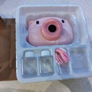 This camera shaped bubble machine is a bit hit with our little one. It was easy to put the batteries and the bubbles in. These bubbles bring so much laughter and joy to our little ones. We just sit the camera on the ledge on our porch and turn it on. So much fun.