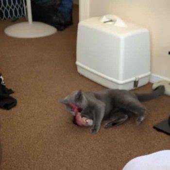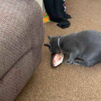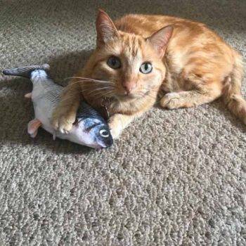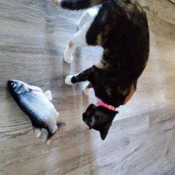 My cat Petey has taken complete ownership of the toy. He is attacking the other cats when they go near it. I had no idea it would be such a big hit with the kitties. The fish find flop like a fish out of water. It’s great.