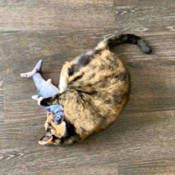 I gave Hope the fish cover while charging the battery at my computer! She enjoyed playing with it and I think it helped her feel comfortable with it on the initial introduction. The part I appreciated most about it was that she spent time playing in the living room it while my boyfriend and I were sleeping. We usually keep her in the room with us because she tries to jump places she’s not allowed, but she had her fill of the fish, and then came and napped with us. It keeps her company! She’s a little co-dependent, so I think it’ll help her when we go back to work. I like to imagine when she played with it without the motor, and then I put the motor in, she was mind-blown and wondered how it suddenly came to life X)