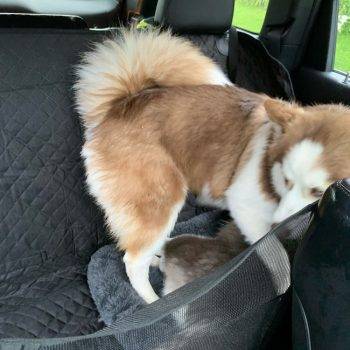 Fits the crossover back seat like a glove! Also seems to be comfy for paws, Lyonel has no complaints.