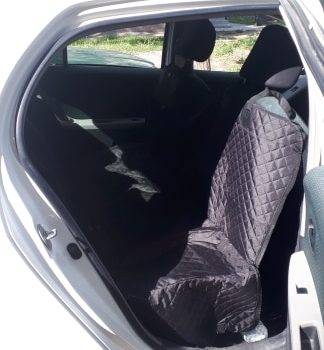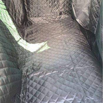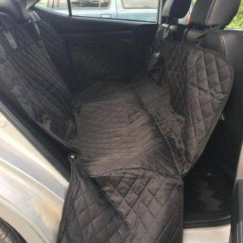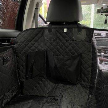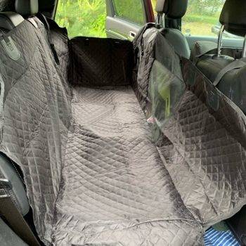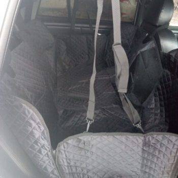 The quality is very good, it has zippers on both sides, so super easy to cover the back seat. Also came with a seatbelt for the pup. The picture is in a jeep grand Cherokee