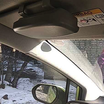 It's a bit big for the driver side, so I put it on the passenger side. Bonus, now I can take them out without blocking my view of the road. If you put them in the slot correctly, they don't move around.