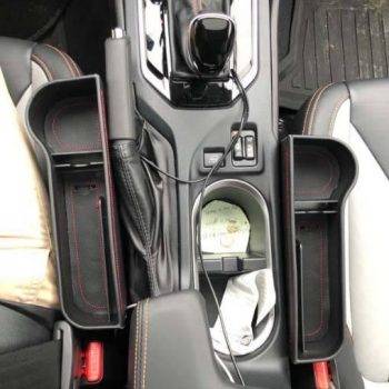 Each organizer features a phone slot, charger hole, drink holder space, and card slot for organized storage.