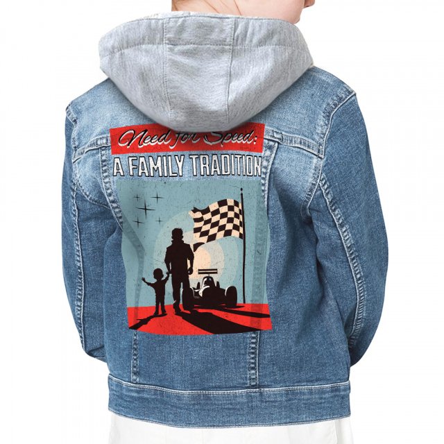 Racing Hero Hooded Denim Jacket for Kids