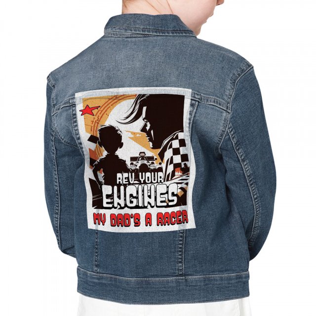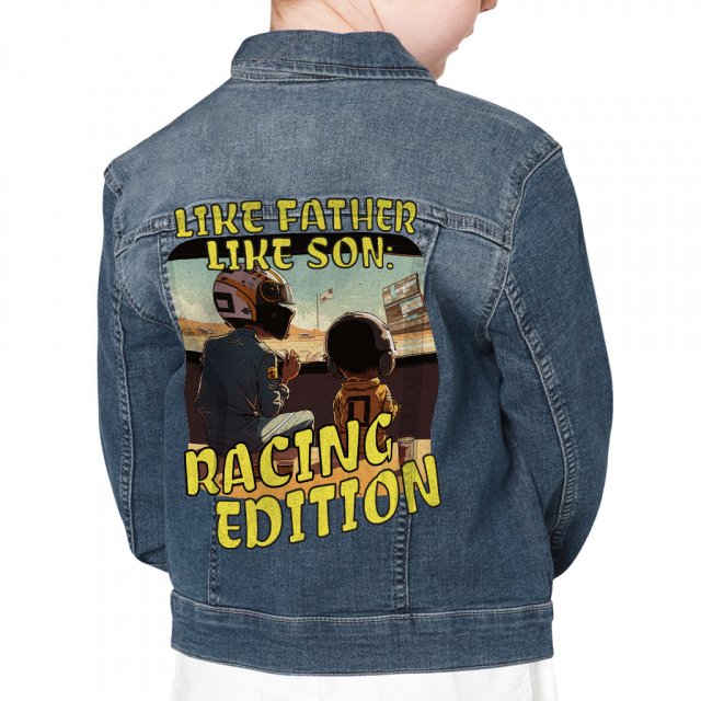 Racing Hero Hooded Denim Jacket for Kids – Unique Jean Jacket – Cool Art Denim Jacket for Kids