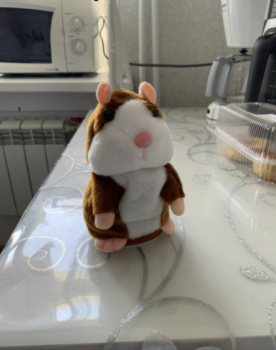 This hamster is a very funny toy for children. I like how it repeats whatever you say. It is pretty small and very easy to carry around. It repeats whatever you say or whatever sound sound you make very clearly just like what you said or what sound you just made. My daughter loves to play with it, she brings it almost everywhere and anywhere she goes.