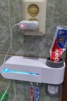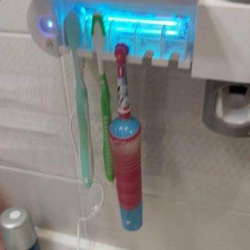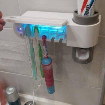 Very cool antibacterial holder. Beautiful design! Holds everyones toothbrush and sanitizes them effortlessly. Great product to save counter space & have a clean toothbrush. Very great product!