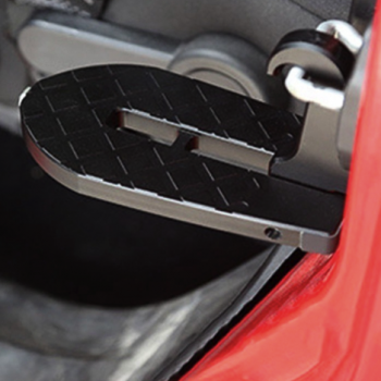 Government safety testing protocol in the U.S requires that every vehicle door latch be able to withstand a vertical force of 2,500 pounds and a horizontal force of 2,000 pounds without failure. Our aluminum-alloy step supports just about any sized human, with up to 440 pounds of support. Step up with confidence without fear of falling or slipping.