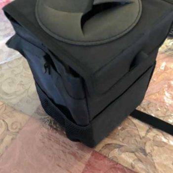 This is a well constructed and sturdy trash bag. The 2 features that I like best are the multiple straps so you have a few different ways to secure it and that it has clips to secure a plastic grocery bag inside for easier clean up. The velcro top with the unique opening allows you to easily place things inside one-handed, but keeps them well contained and out of sight.